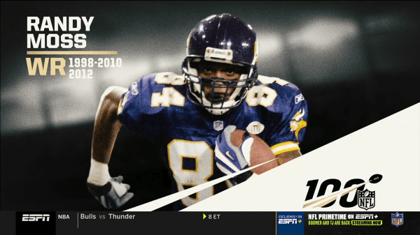Unveiling NFL Hall of Famer Randy Moss live on ESPN's broadcast, that he was selected on the NFL 100 All-Time Team